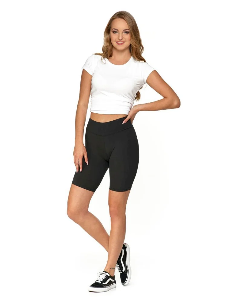 Legginsy damskie wysoki stan typu kolarka peach touch CZARNY