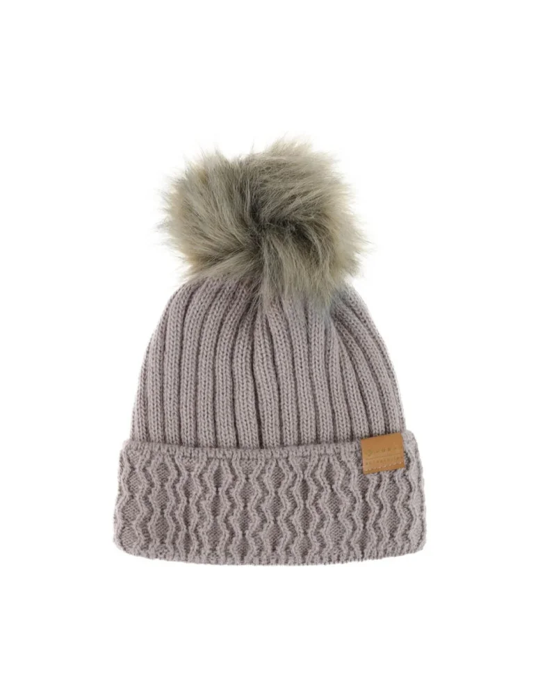 Czapka dziecięca ocieplana z puszystym pomponem BRĄZOWY