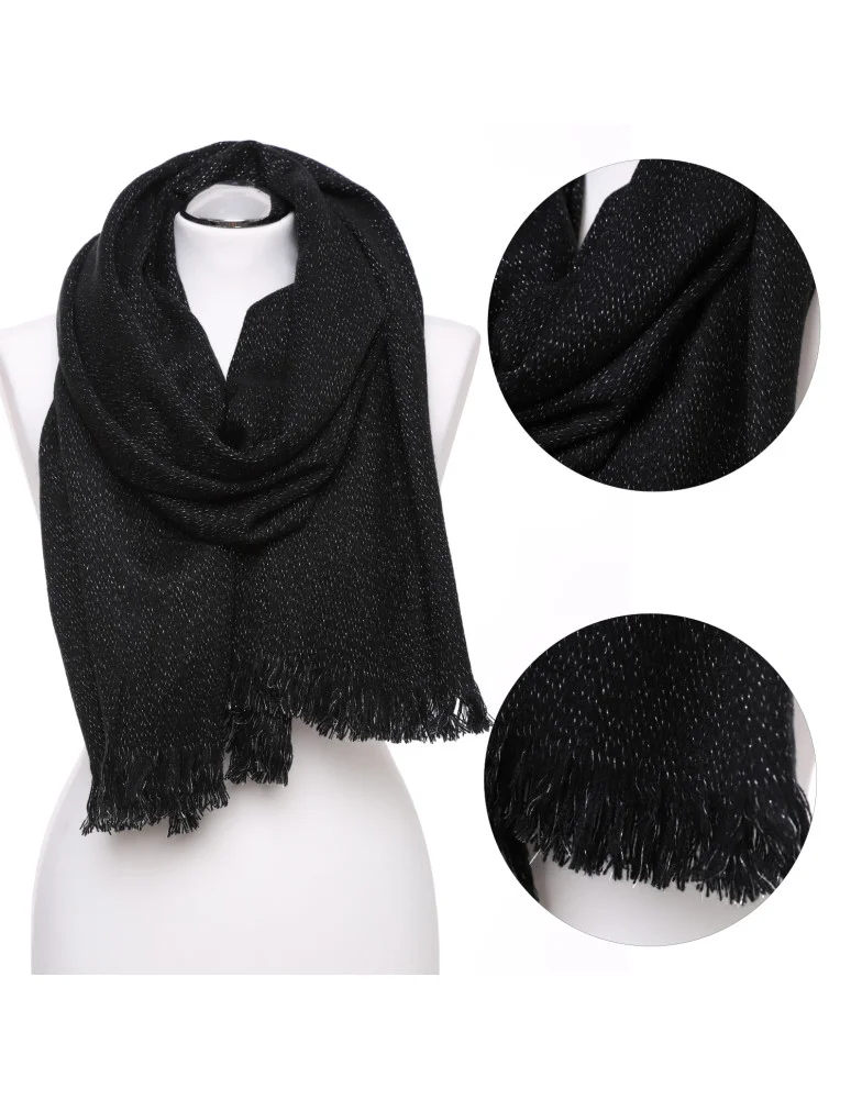 Szal damski gruby przeplatany srebrną nitką CZARNY