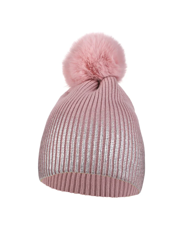Ciepła zimowa czapka damska z pomponem RÓŻOWY