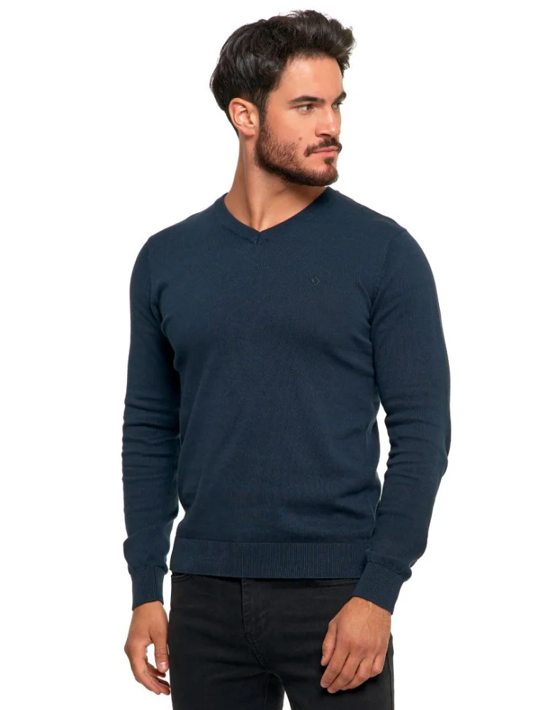 Klasyczny sweter męski bawełniany o prostym kroju GRANATOWY