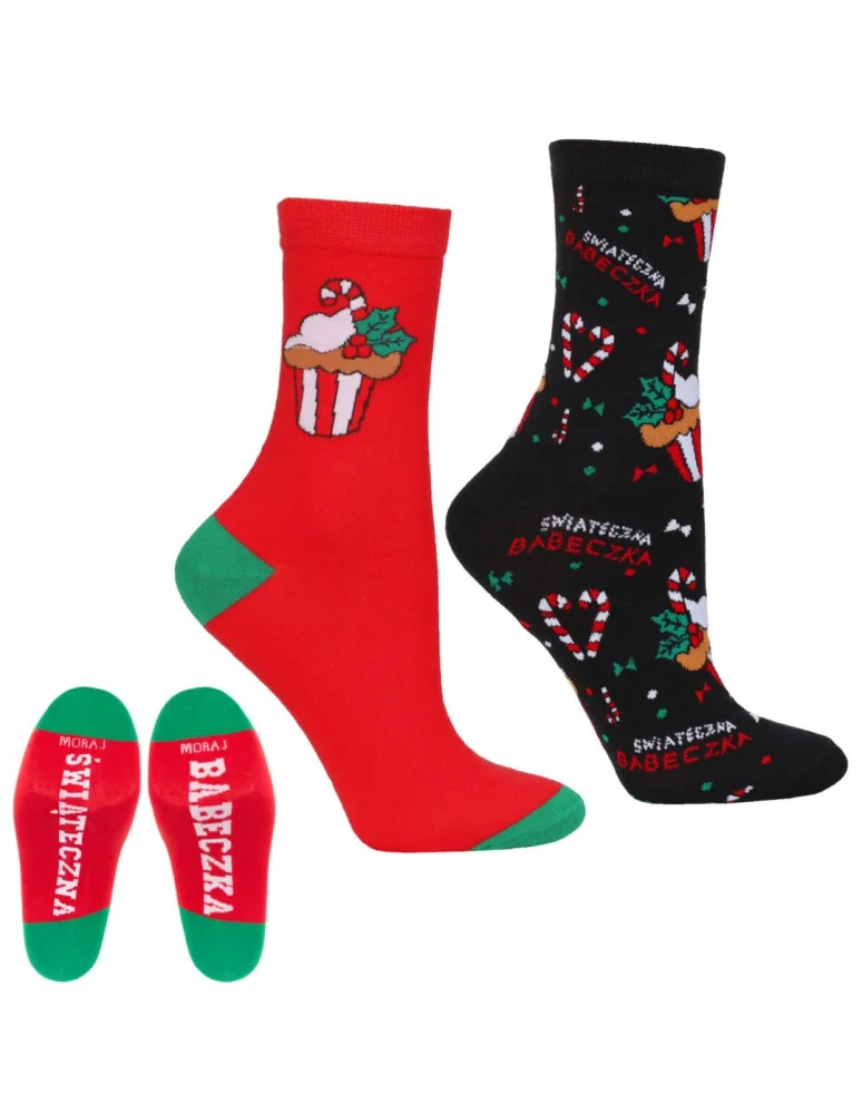 Skarpety damskie z napisem świąteczna babeczka 2-pak WIELOKOLOROWY