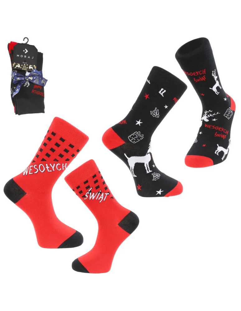 Świąteczne skarpetki męskie długie na prezent WIELOKOLOROWY