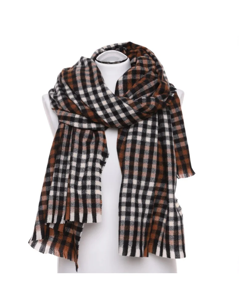 Szal damski cienki z drobnym wzorem w kratkę Ciemny brązowy