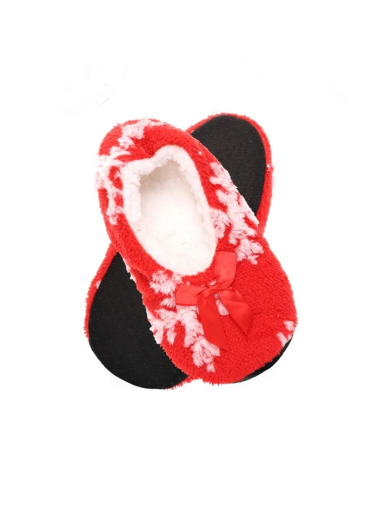 Kapcie bambosze damskie w zimowy wzór CZERWONY