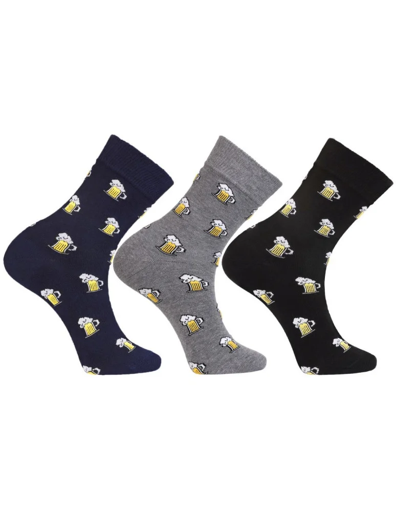 Skarpety męskie długie kufle piwa 3-pak WIELOKOLOROWY
