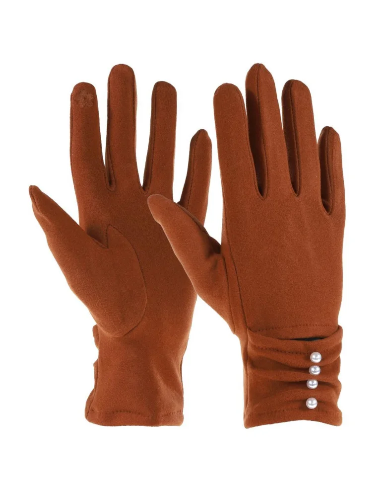 Damskie rękawiczki z perełkami BRĄZOWY