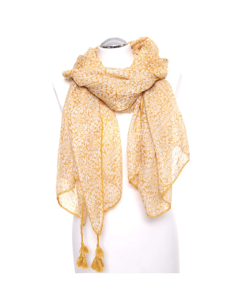 Cienki szal damski na wiosnę orientalny wzór BEŻOWY