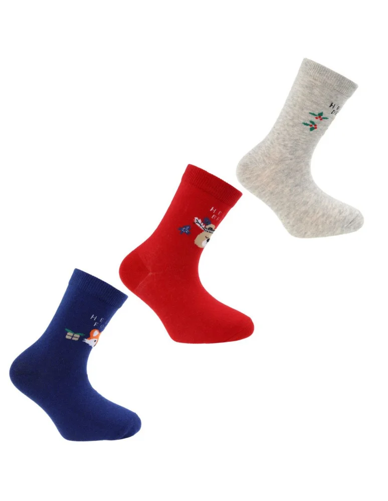 Skarpetki dziecięce długie w świąteczne zwierzątka 3-pak WIELOKOLOROWY