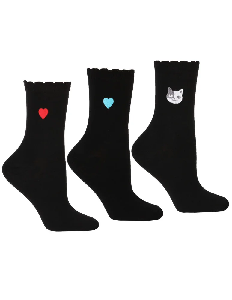 Czarne skarpetki damskie z haftem 3-pak WIELOKOLOROWY