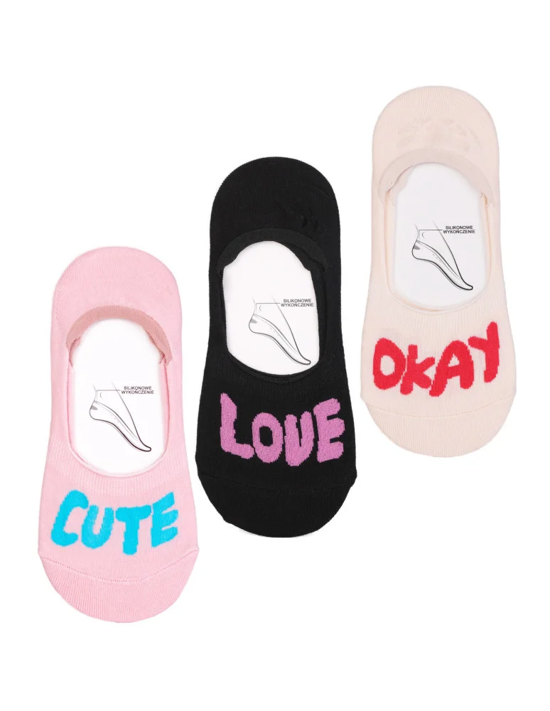 Skarpetki niskie stopki bawełniane z napisami 3-pak WIELOKOLOROWY