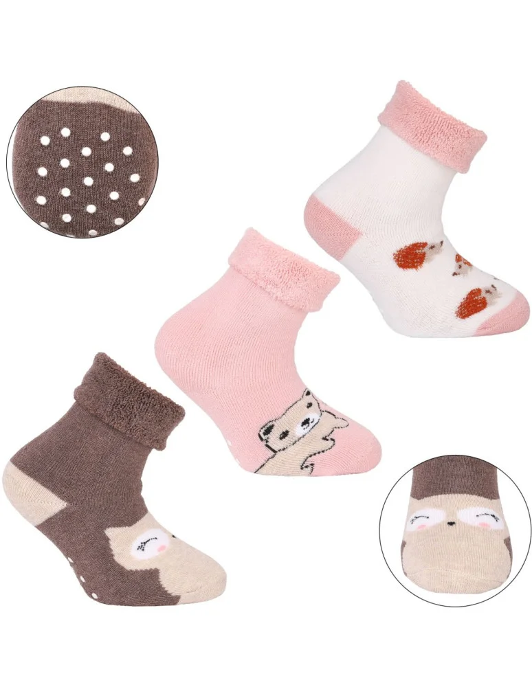 Ciepłe długie skarpetki niemowlęce bawełniane z abs 3-pak WIELOKOLOROWY