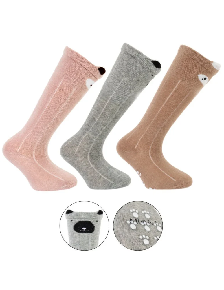 Długie skarpetki niemowlęce bawełniane w zwierzątka 3-pak WIELOKOLOROWY
