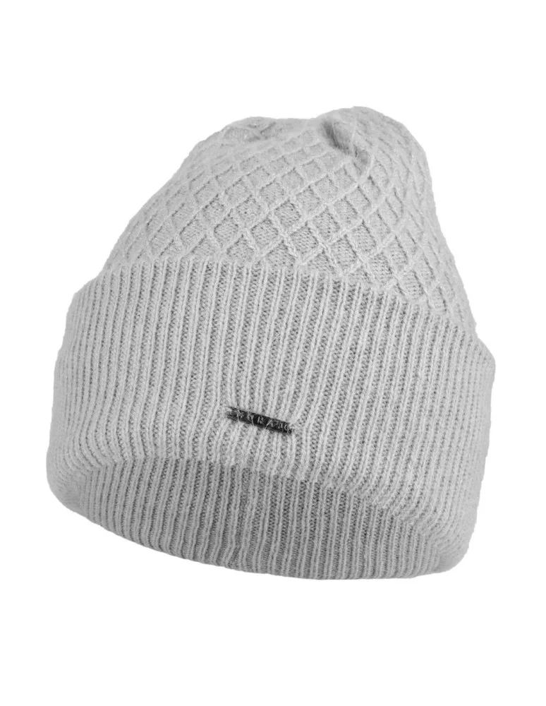 Ciepła damska czapka zimowa z angory dzianinowa SZARY