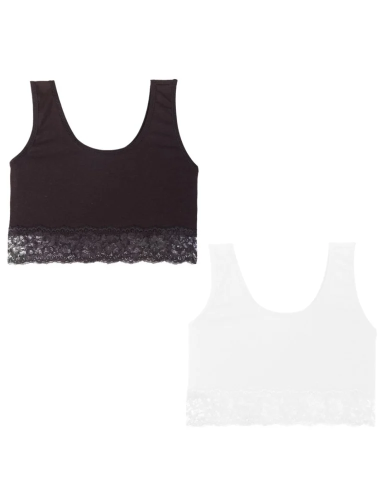 Biustonosz miękki top dla dziewczynki biały i czarny 2-pak WIELOKOLOROWY