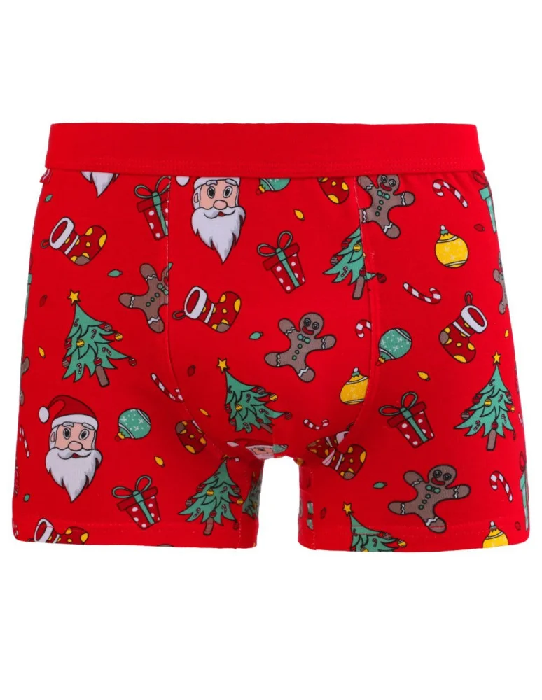 Świąteczne bokserki męskie bawełniane na prezent CZERWONY