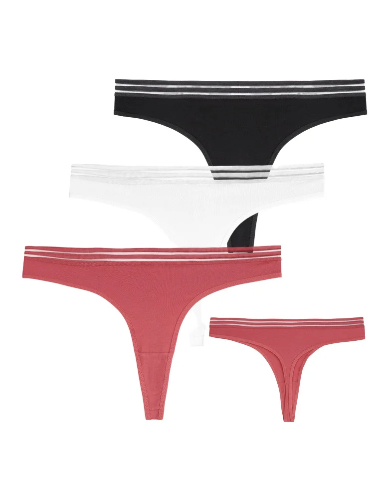 Majtki stringi damskie bawełniane z siateczkową gumką 3-pak WIELOKOLOROWY