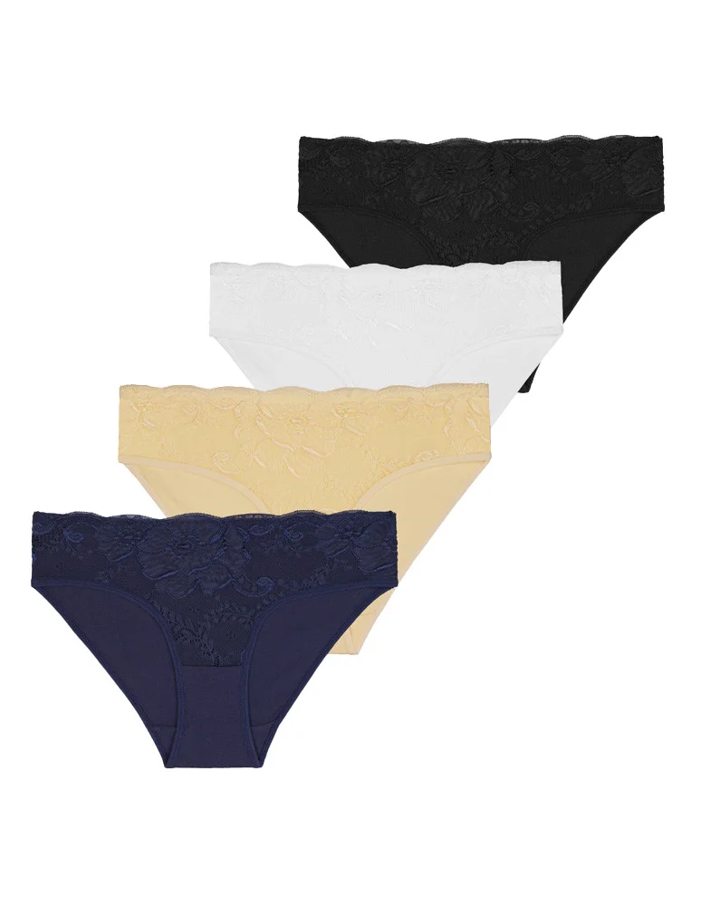 Majtki figi damskie z koronkowym przodem w kwiaty 4-pak WIELOKOLOROWY