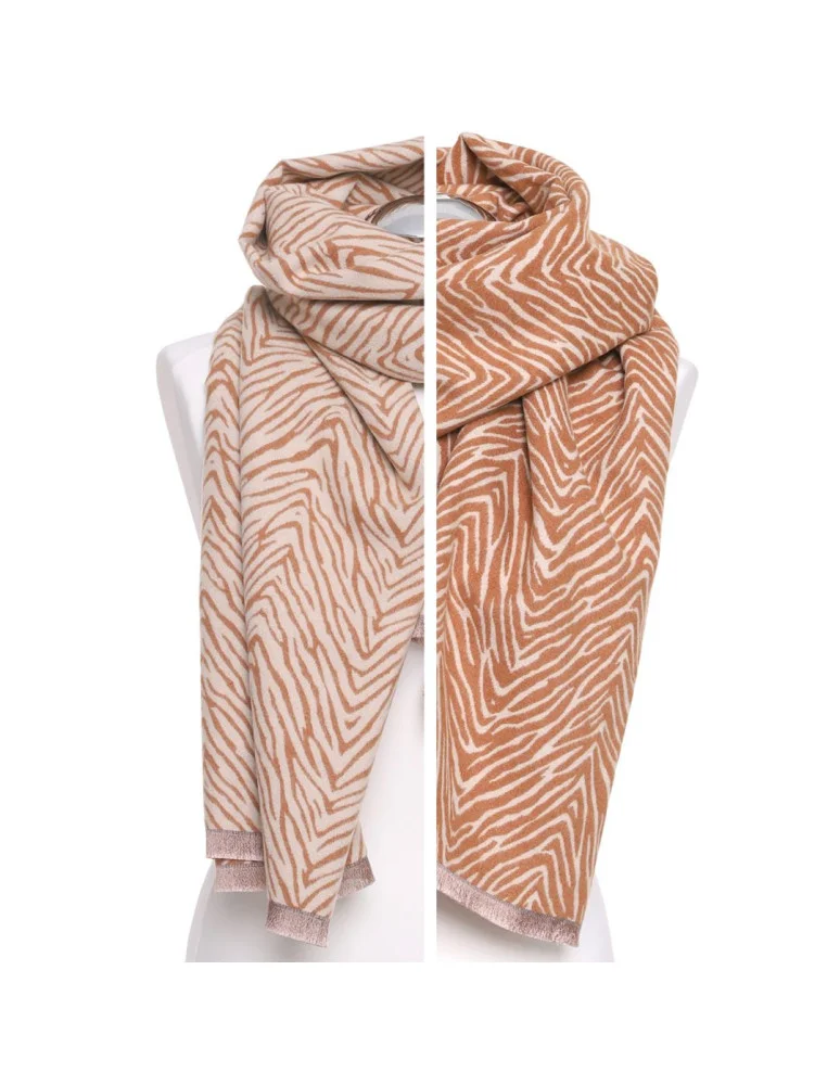Szal damski w zebrę dwustronny na jesień i zimę z wiskozą BEŻOWY