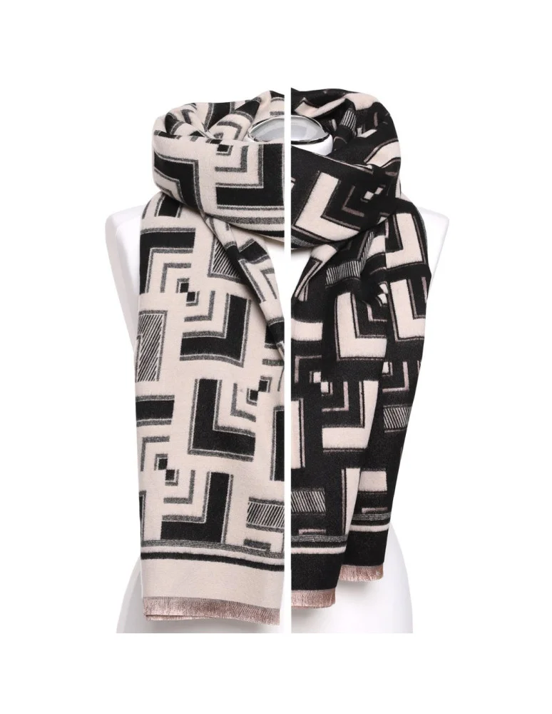 Szal damski dwustronny w geometryczny wzór CZARNY