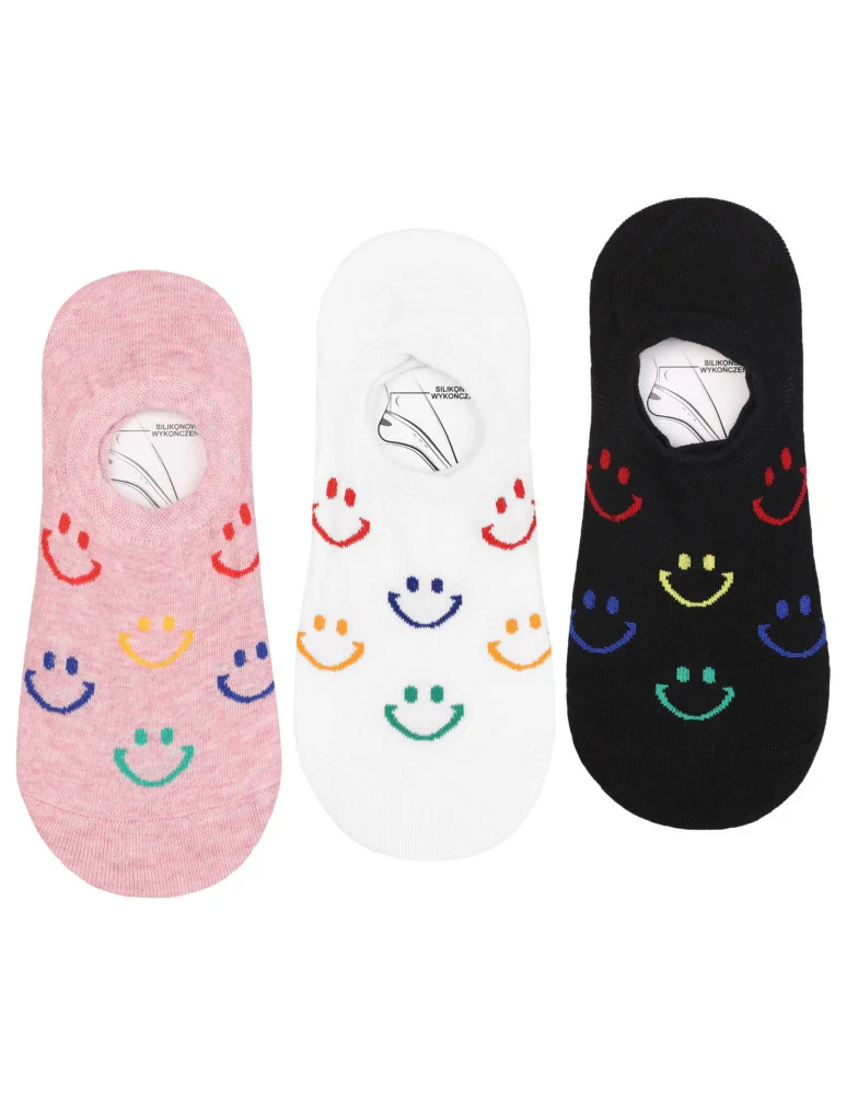 Skarpetki stopki damskie niskie bawełniane uśmiech 3-pak WIELOKOLOROWY
