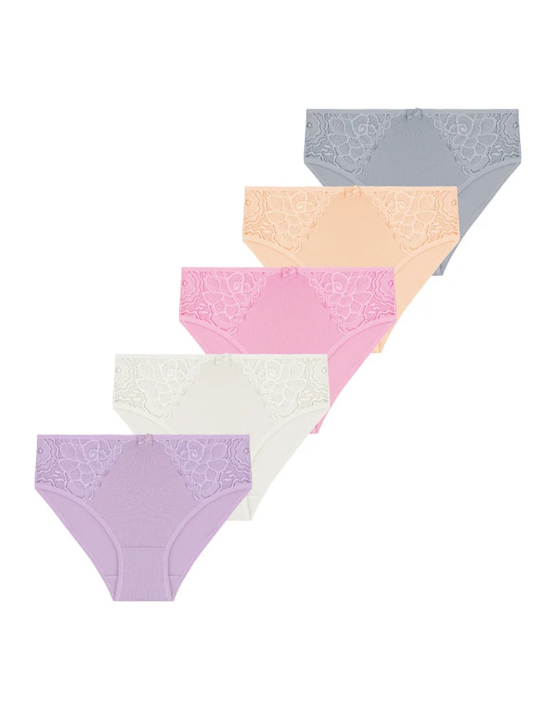 Majtki damskie figi prążkowane z koronkowym zdobieniem 5-pak WIELOKOLOROWY