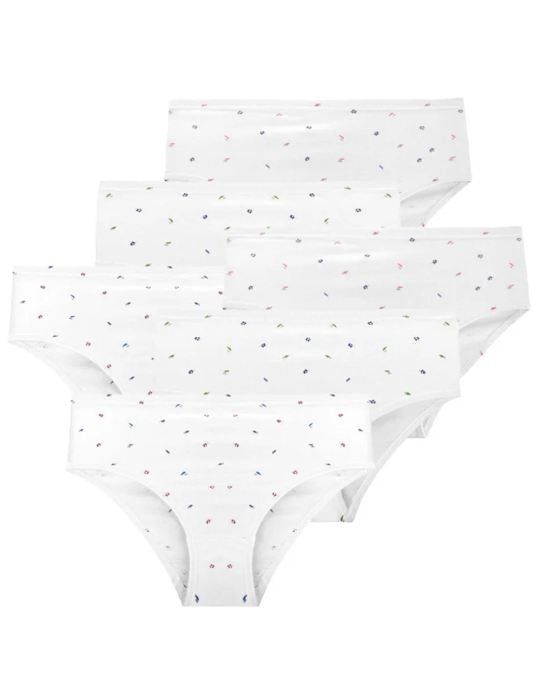 Majtki figi damskie bawełniane 100% w kwiatki 6-pak BIAŁY