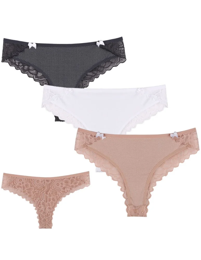Majtki figi damskie bawełniane z koronkowym tyłem 3-pak WIELOKOLOROWY