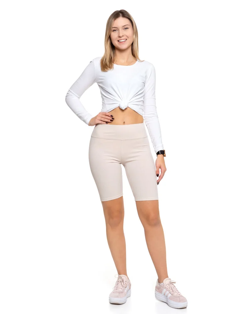 Legginsy kolarki damskie w prążek wysoki stan BEŻOWY