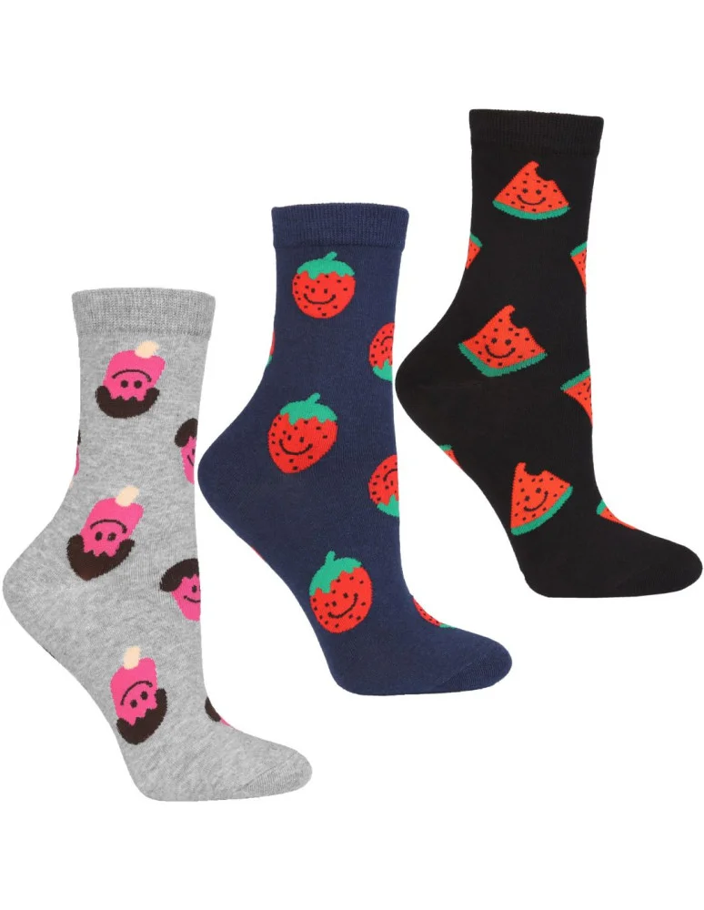 Skarpetki damskie długie w owoce zabawne 3-pak WIELOKOLOROWY