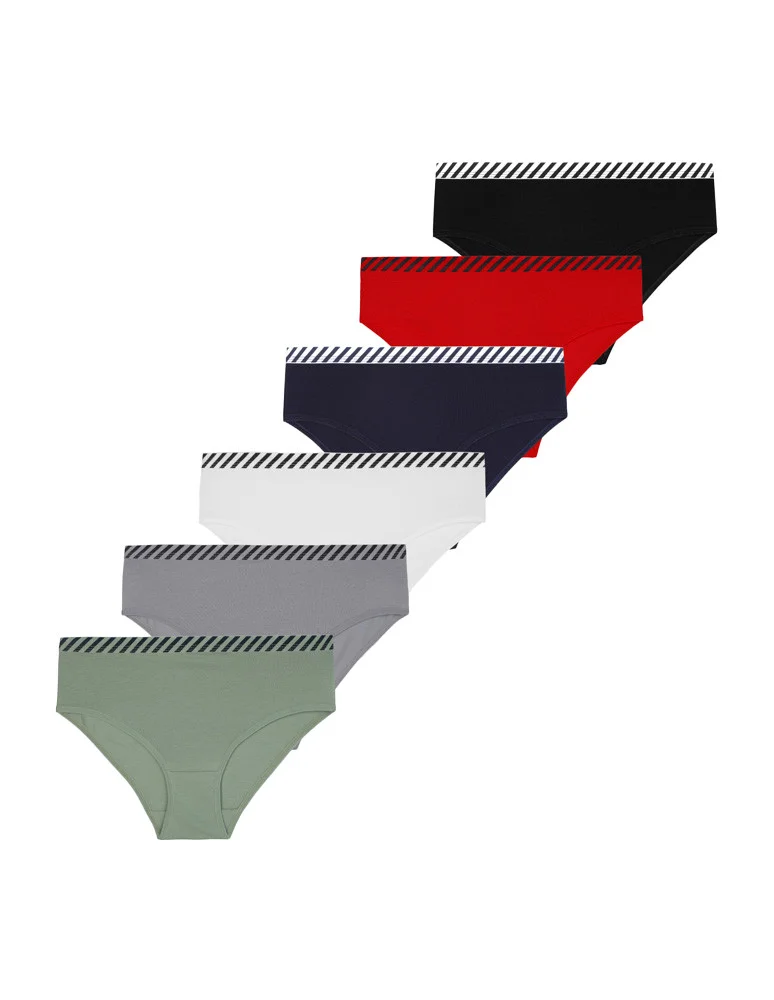 Majtki figi damskie bawełniane z gumką w pasie 6-pak WIELOKOLOROWY