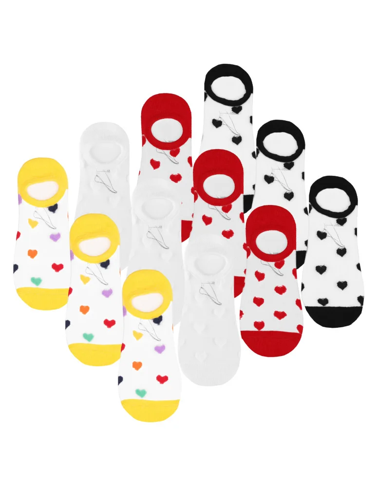 Skarpetki damskie niskie stopki transparentne w serca 12-pak WIELOKOLOROWY