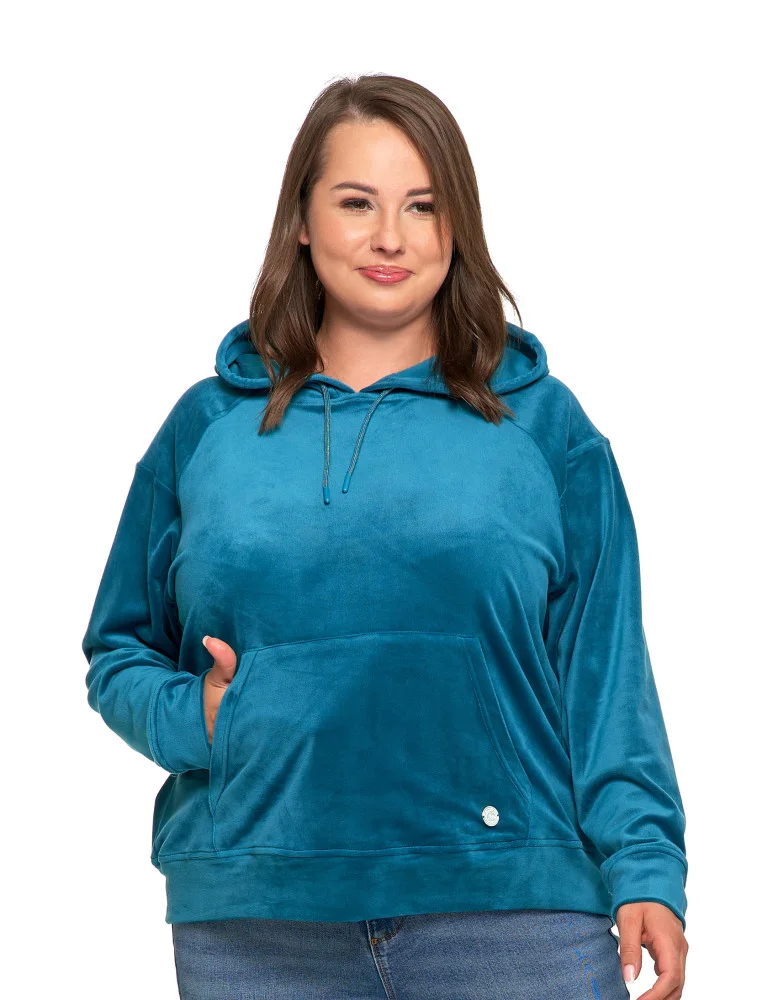 Damska welurowa bluza z kapturem ZIELONY