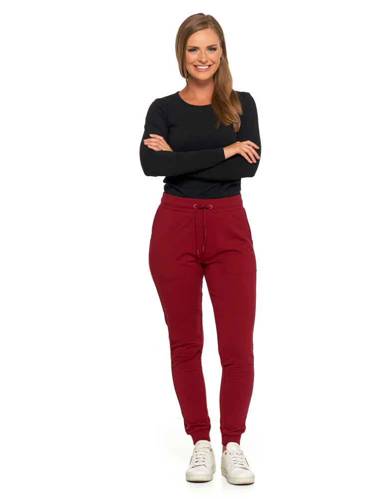 Damskie spodnie dresowe z elastycznym ściągaczem bawełniane CZERWONY
