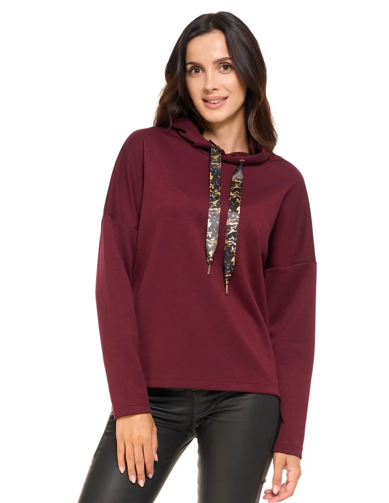Luźna damska bluza z kapturem ze złotym zdobieniem FIOLETOWY