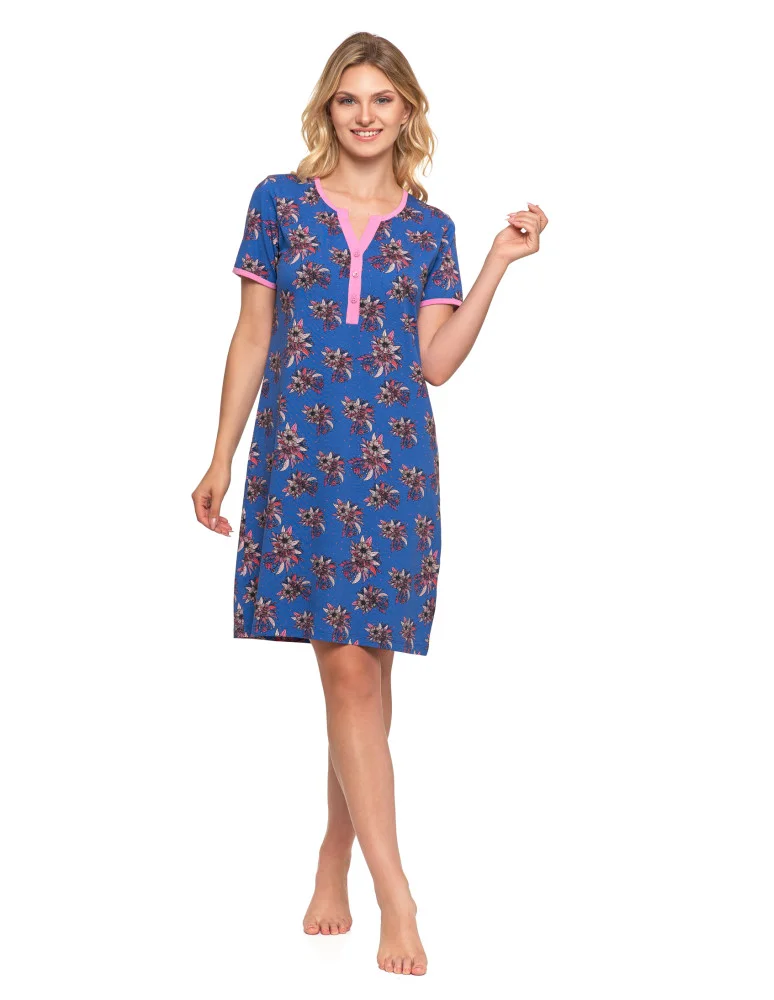 Damska piżama koszula nocna krótka w kwiatowy wzór GRANATOWY