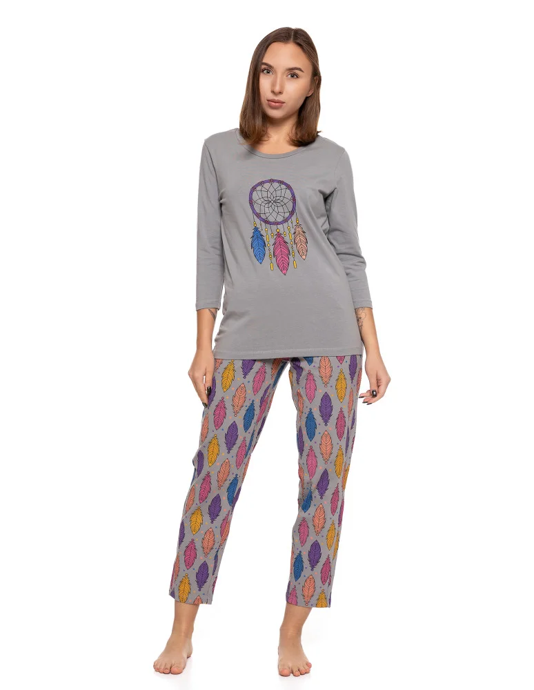 Piżama damska dwuczęściowa Plus Size w motyw łapacza snów SZARY