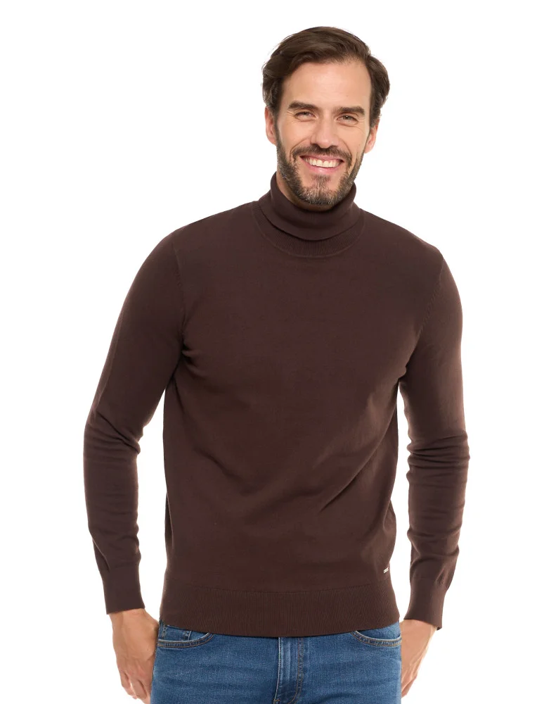 Męski sweter klasyczny z golfem bawełniany BRĄZOWY