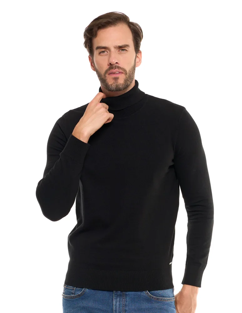 Męski sweter klasyczny z golfem bawełniany CZARNY