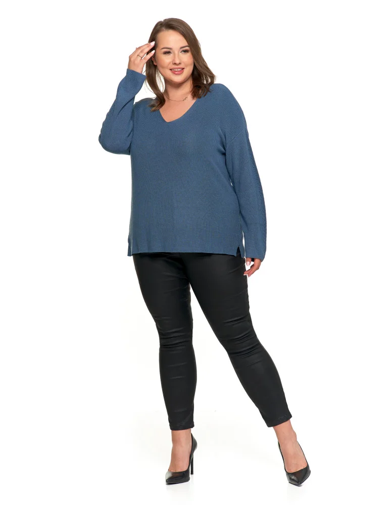 Cienki sweter damski dzianinowy z wiskozą NIEBIESKI