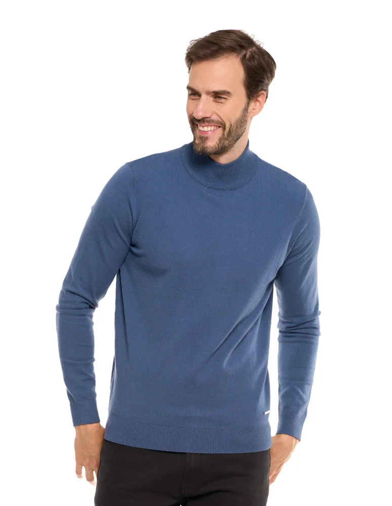 Męski sweter klasyczny z golfem NIEBIESKI