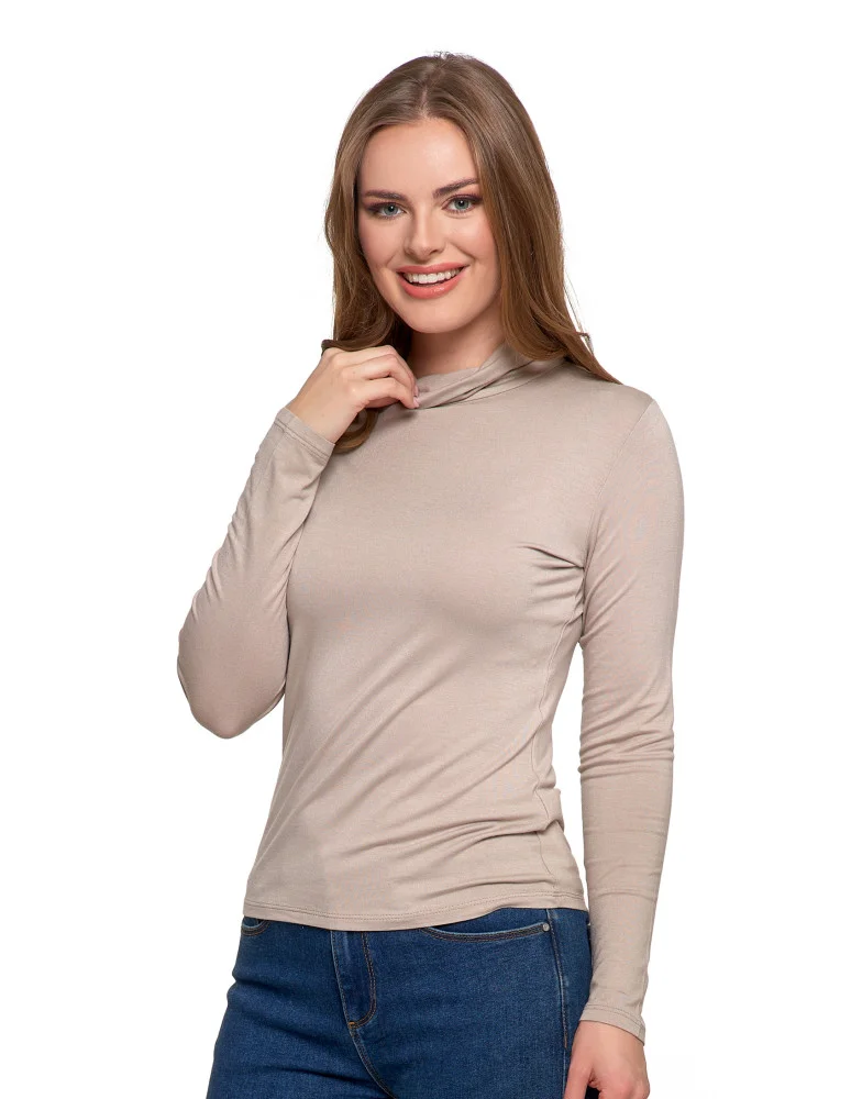 Damska bluzka z golfem i długim rękawem wiskozowa BEŻOWY