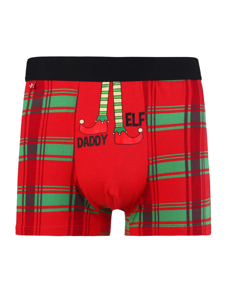 Zabawne męskie bokserki świąteczne z elfem w kratkę WIELOKOLOROWY