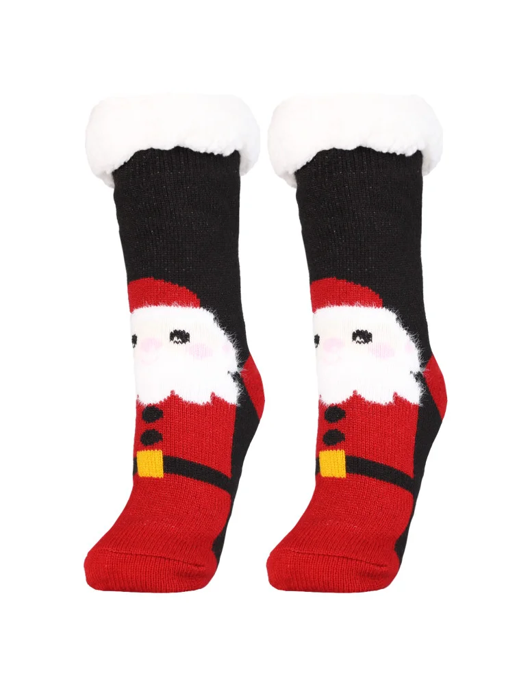 Świąteczne ciepłe skarpety damskie bambosze zimowe CZARNY
