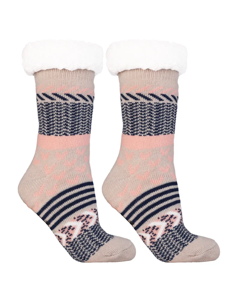 Ciepłe skarpety damskie zimowe z motywem norweskim BEŻOWY