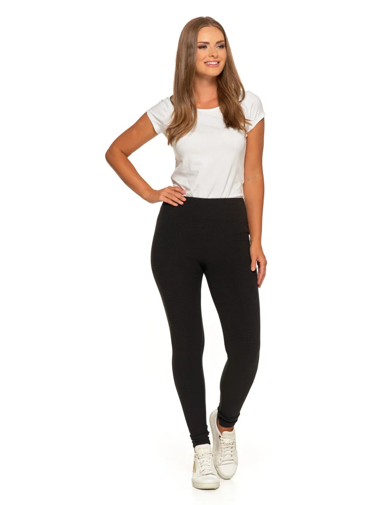 Damskie legginsy z wysokim stanem i prążkowaną strukturą CZARNY
