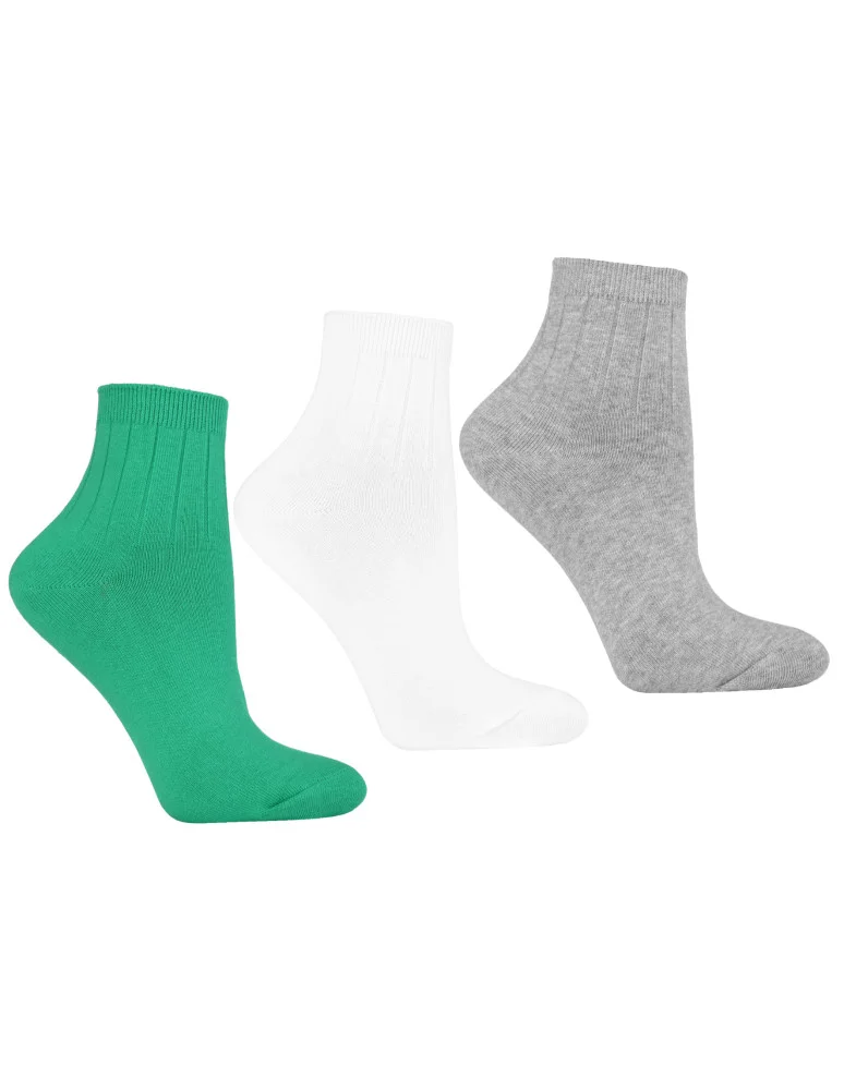 Skarpetki damskie krótkie 3/4 bawełniane z prążkami 3-pak WIELOKOLOROWY