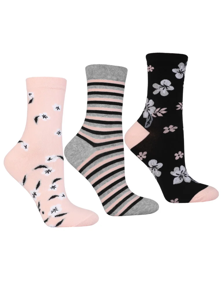Damskie skarpetki długie z motywem kwiatów 3-pak WIELOKOLOROWY