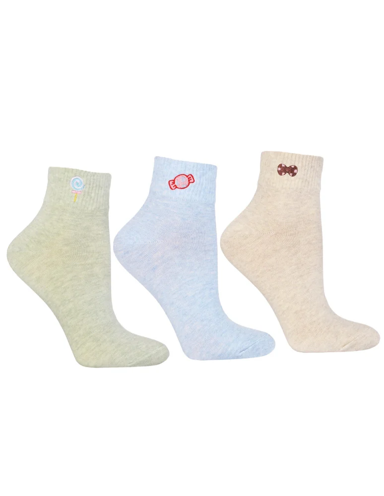 Skarpetki do kostki bawełniane z haftem 3-pak WIELOKOLOROWY