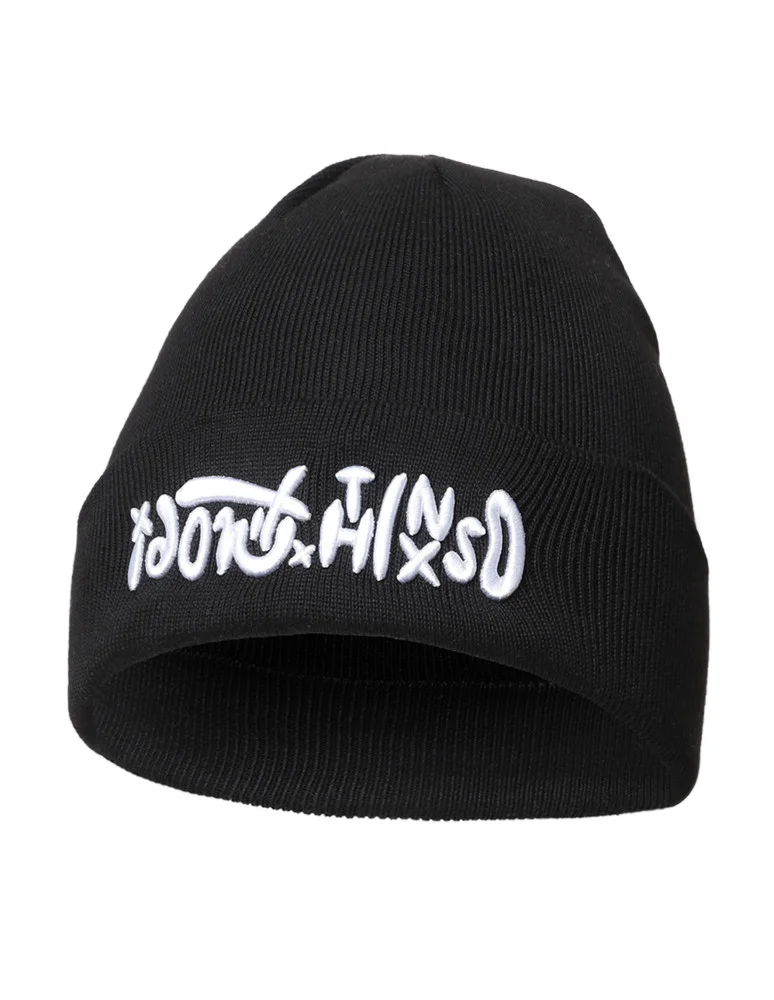 Męska czapka zimowa beanie z haftem CZARNY